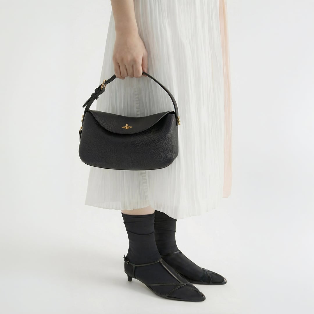どんな装いにも寄り添い、格上げしてくれるタイムレスな「ブラック」。フォーマルな場からカジュアルな日常まで、あらゆるシーンに溶け込みながら、ゴールドの金具が華やかなアクセントを加えます。